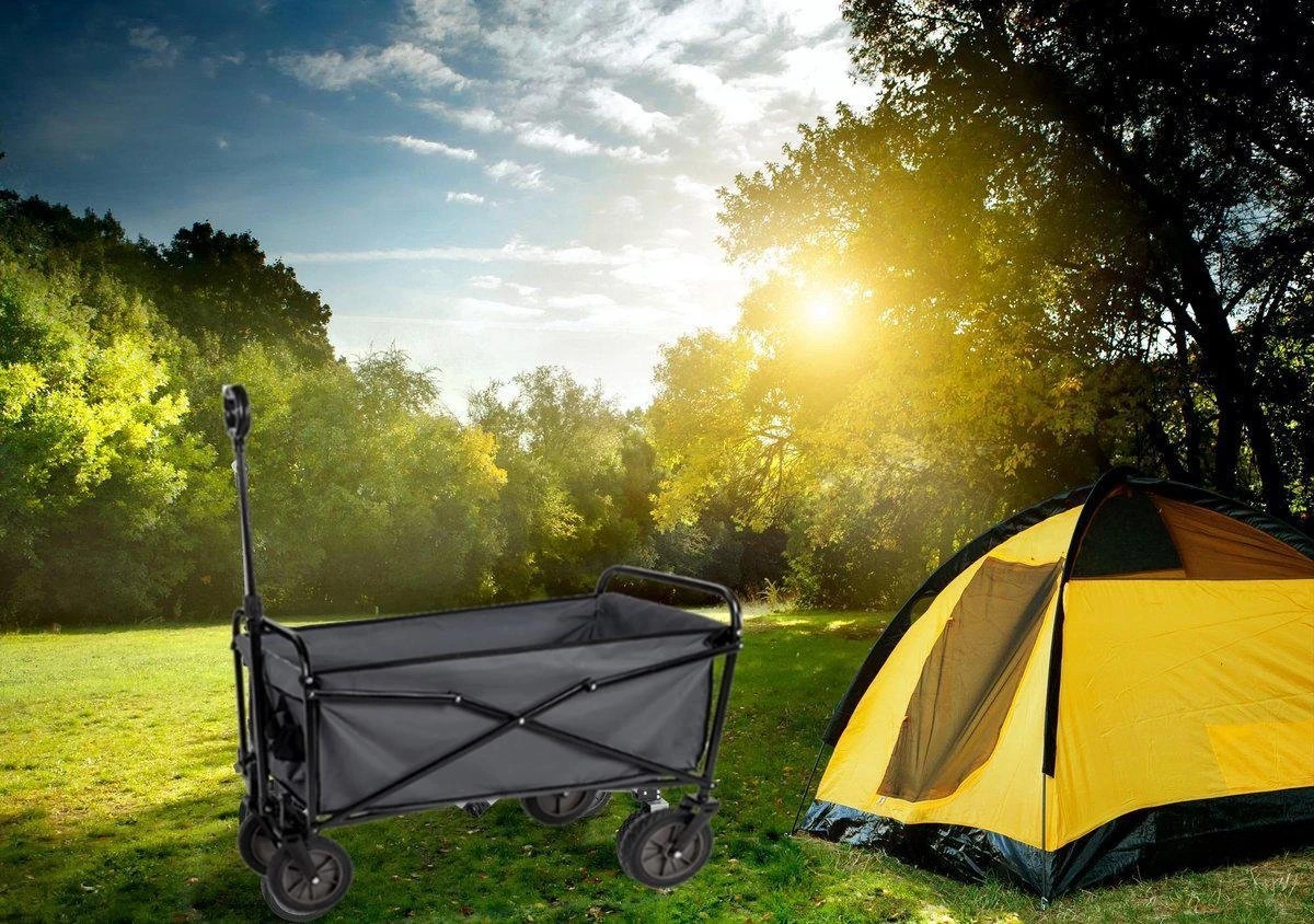 De bolderkar is je helpende hand bij het vervoeren van spullen naar je kampeerplek. Ook op een dagje naar het strand of voor een festivalcamping komt hij perfect van pas! De bolderkar kan tot wel 75 kg dragen, zodat je al je campingstoelen, koelboxen en andere benodigdheden eenvoudig mee kunt nemen. Dat scheelt heel wat tripjes heen en weer. De stevige kunststof wielen van de bolderkar zijn uiterst wenkbaar en je trekt de bolderkar eenvoudig voort aan het ergonomische handvat. De kuip is gemaakt van weerbestendig textiel en voorzien van een waterafstotende coating. Je kan hem dan ook in alle weersomstandigheden gebruiken.