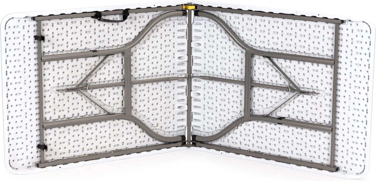 Het tafelblad is vrij ruim, meet 180 x 70 cm en is precies goed voor allerlei soorten evenementen, binnen of buiten. De poten zijn afgewerkt met rubberen voetjes, die de vloer beschermen tegen krassen en voorkomen dat de tafel wegglijdt op natte oppervlakken.
